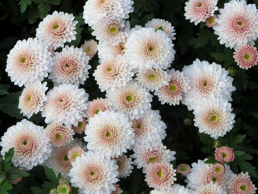 Хризантема мультифлора Яхо (Yahou) – это изысканное украшение для вашего сада, которое привнесет в него яркие краски и элегантность. Этот сорт отличается необычным сочетанием белых лепестков с нежной розовой серединой, создавая эффектный контраст и привлекая внимание.
