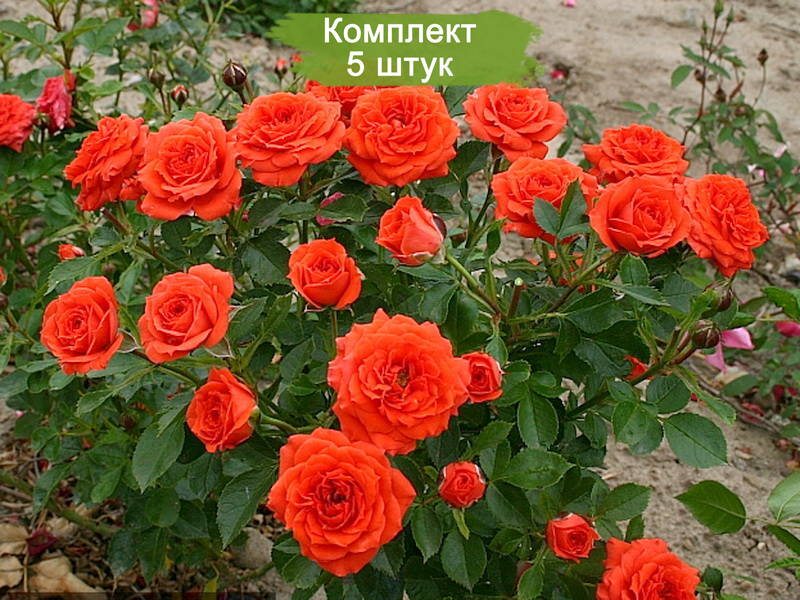В комплекте 5 саженцев, готовых к высадке в открытый грунт или контейнеры. Позвольте вашему саду засиять яркими красками с розами Оранж Бейби!