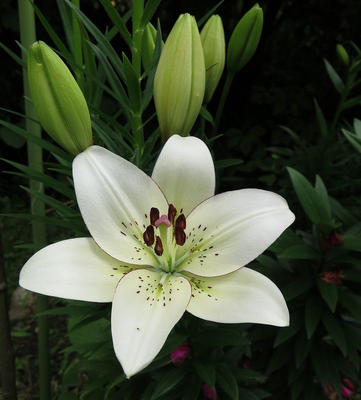 Лилия Eyeliner (Айлинер) – это изысканный ЛА-гибрид, который станет настоящим украшением вашего сада. Этот сорт отличается крупными, белоснежными цветками с тонкой, изящной каймой темно-фиолетового цвета по краям лепестков, что придает им особую утонченность и шарм. Лилии Eyeliner обладают приятным, нежным ароматом, который наполняет сад атмосферой уюта и гармонии.