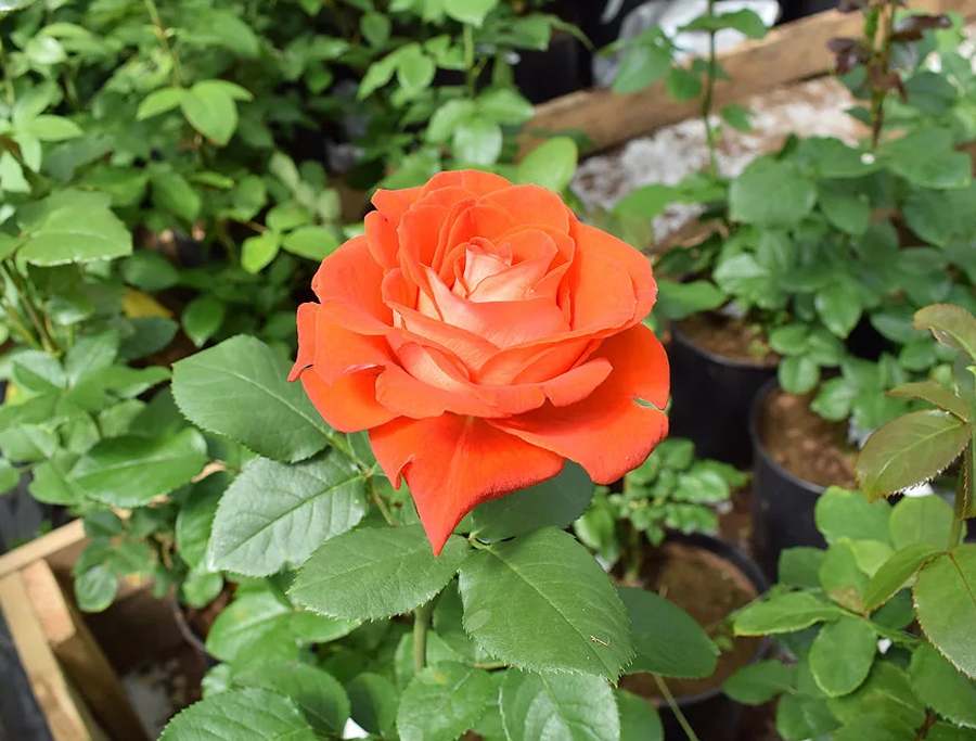 - Крупные, густомахровые цветки оранжево-красного оттенка